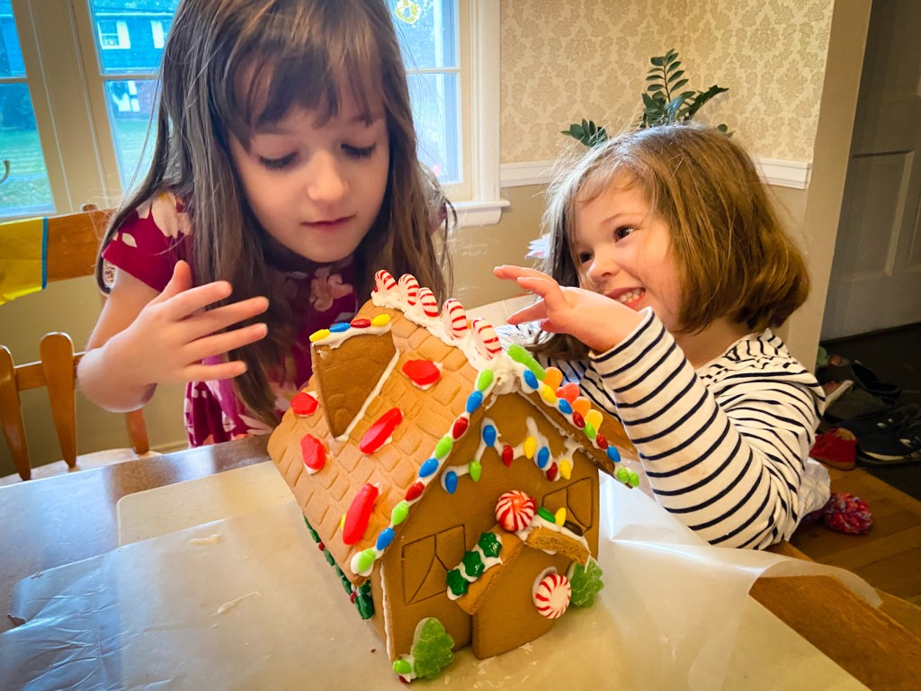 My sister, brother, and me on the right.My daughters helping me carry on the tradition of making art at our dining room table.