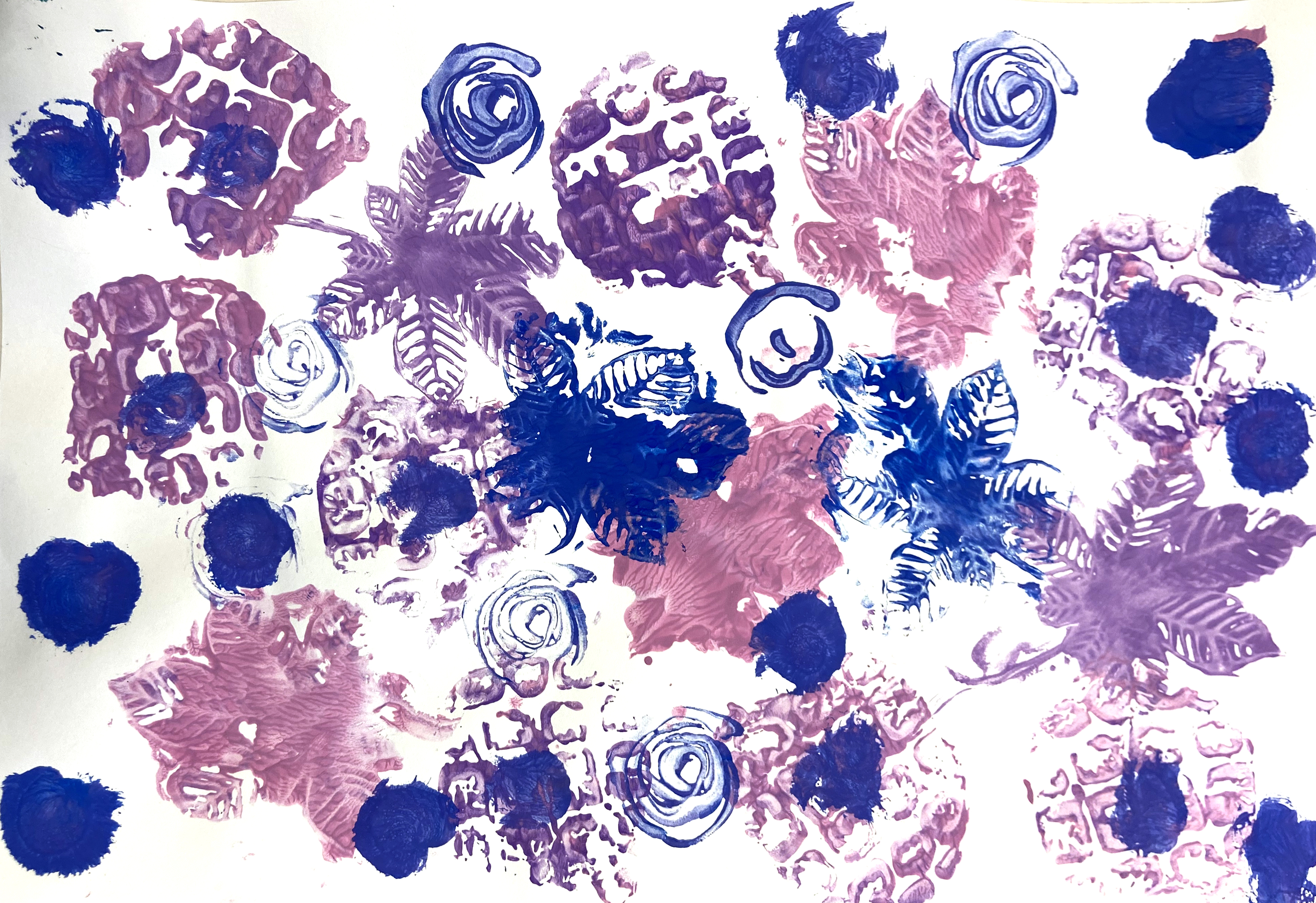 Students embrace the challenge of designing a beautiful radial pattern on foam and then try their hand at printing for the first time using ink and a brayer. To add an extra dimension to their creativity, we later utilized Model Magic to craft unique patterns for printing. It was a messy affair, but the joy and fun experienced were immeasurable!